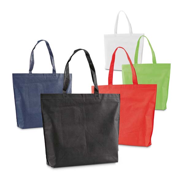 Sacola em non-woven (80 g/m²) termo-selado com alças de 55 cm.