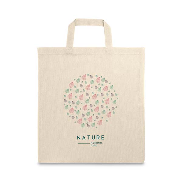 Sacola 100% algodão (100 g/m²) com alças de 30 cm.