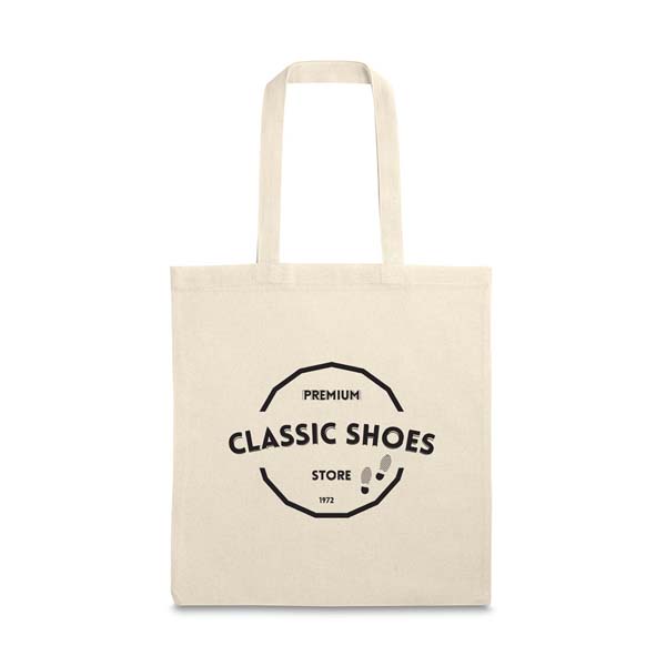 Sacola 100% algodão (140 g/m²) com alças de 60 cm.